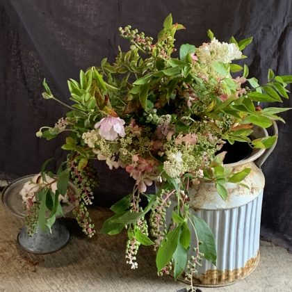 4月の月1レッスンは、スイトピーとビバーナムのアレンジメントでした。